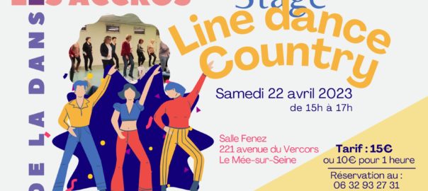 Venez participer au stage de danse Country et Line Dance lors du stage organisé par Les Accros de la Danse 77 au Mée-sur-Seine le samedi 22 avril 2023 de 15h à 17h à la salle Fenez.